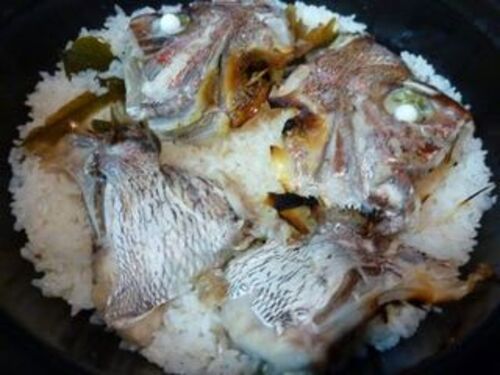 昼間に御馳走をいただくと、夕飯の事を考えるのが億劫になる 父さんは偉い! そんなときでもしっかりと考えて・・・ で・・土鍋で炊きこんだ鯛飯 鯛のあらのうろこを丁寧に取り除き、焼いて臭みをとり炊きこむ。 お米と同量の昆布だし・強火にかけて蒸気が上…