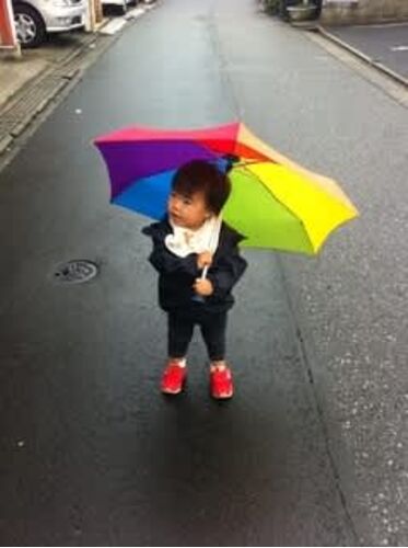 息子から写メが ピチピチチャプチャプ 雨も楽しいね 来週会うのが楽しみ