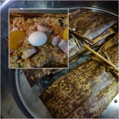2011-05-03 中華ちまき 父さんの料理 父さんは10連休です! 今夜は中華ちまき 大きな竹の皮があったので、大きな中華ちまきが出来上がりました~ 筍・椎茸・栗・ウズラの卵・自家製のチャーシューとあなご入り 中身もたっぷり 明日から福島から新潟を抜けるルートでドライブ旅行 朝早く・・ちまき弁当をもって出かけます