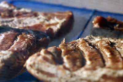 午前中に塩抜きして水分を拭き取った豚肉を 今夜一晩寒風にあてて引き締めます