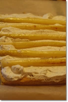2013-05-01 ホワイトアスパラのロールケーキ 母さんのお菓子 野菜ソムリエのえり子先生の教室で こんな可愛いロールケーキを作りました〜 シナモンの香りのスポンジ・紅茶のクリーム・ソテーしたホワイトアスパラ くるり 上手に巻けると拍手が湧きます! ヽ(・∀・)ノ楽しいo(^o^)o 美味しいティータイム こんなひと時が私の日常のエッセンスとなって