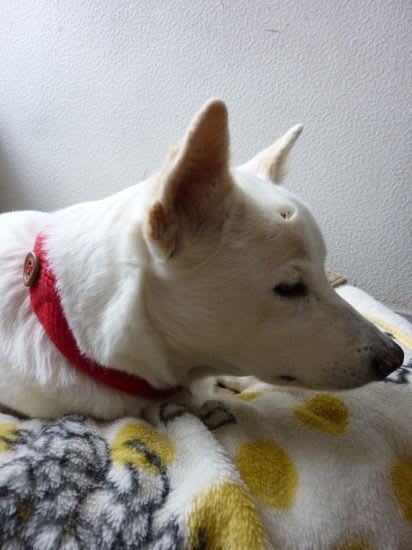 我が家のワンコも赤が似合いそうとsajiお姉ちゃまが苦手な編み物で編んでくれました~ 赤いマフラー