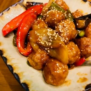 サーモンはお寿司に 肉団子は酢豚風にしたよー 美味しい食材ありがとう!