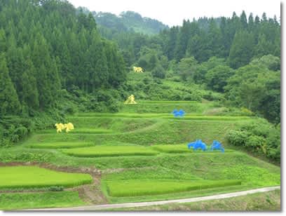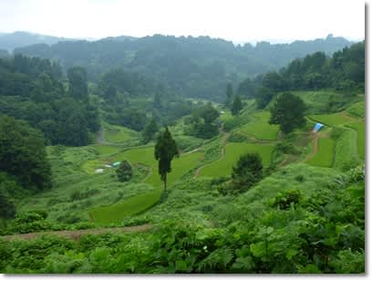 2011-08-24 まつだいの棚田・大地の芸術祭 旅行 8/18 日本のピラミッドと言われている棚田へ~新潟県十日町 美しい里山の風景 そんな里山の森の中にひっそりと・・ 新鮮な卵や野菜をお買い物! おばあちゃまの笑顔がとても可愛らしく ほくほく線発祥の地 まつだい駅近く、農舞台から大地の芸術祭の里山アート作品を見学 カバコフの作品「棚田」 大地の芸術祭 http://www.echigo-tsumari.jp/triennale/